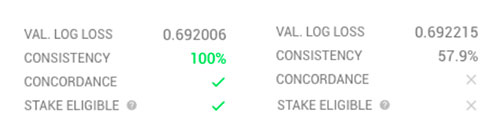 Your submitted predictions will be used internally as part of our meta model over a period of time and graded on how well they perform, after that period ( currently 31 days ), your result along with that of others will be made public and you will receive a payout 💰 if you staked and performed well or burn 🔥 ( loose your stake ) if you performed poorly ( else your stake will be returned ), submitted models that did not stake are also graded and might be given NMR if they perform well (currently 0.1 NMR if their logloss is < 0.693 ).